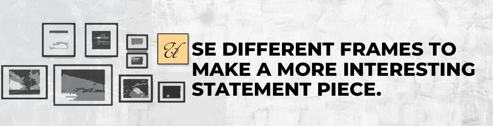 When your collection is ready, you'd want to choose a picture or object that will be your gallery’s center or hero piece. It could be the biggest picture you have or the largest and most stunning art piece. If you’re arranging an eclectic collection, your focal point could be a large mirror, a clock, or any of your largest treasures. Then you could tuck in the smaller pieces all around the largest piece to give it a balanced look, depending also on your chosen layout or template.