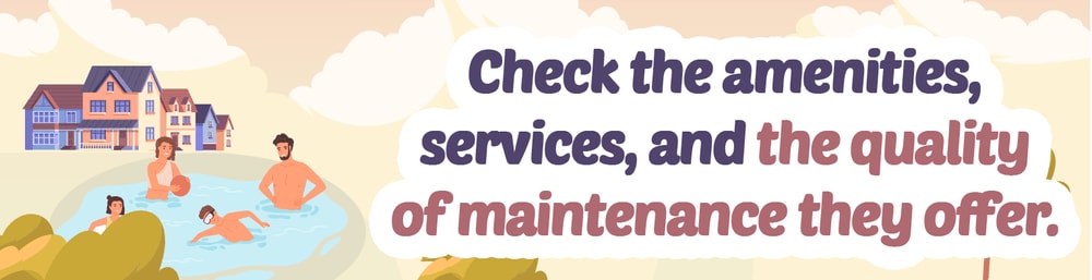 In addition to amenities, don’t forget to check the scope of services provided by the association. These may include tasks such as landscaping, trash collection, snow removal, security, and other maintenance and repair duties.